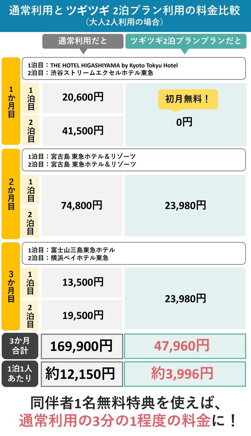 Q3下記は通常利用とツギツギ2泊プラン利用の料金比較です。お得だと思いますか?
